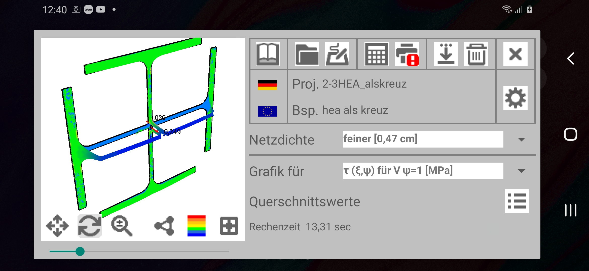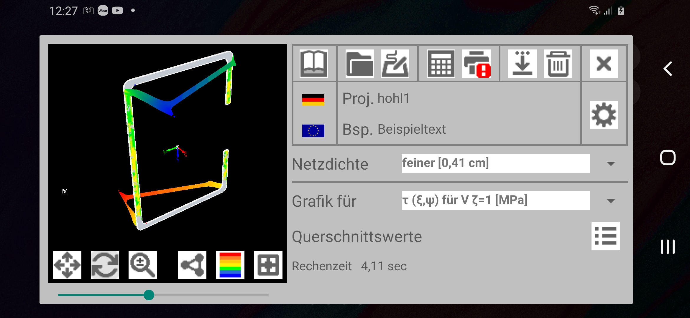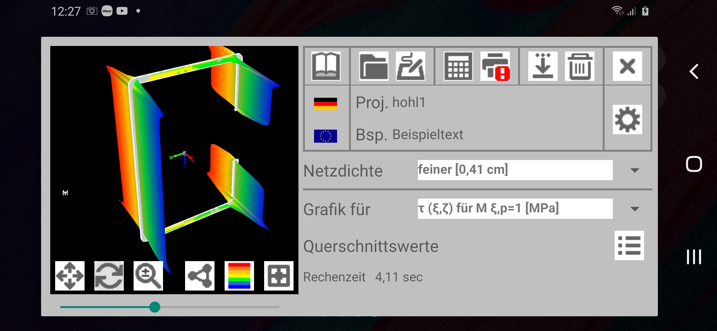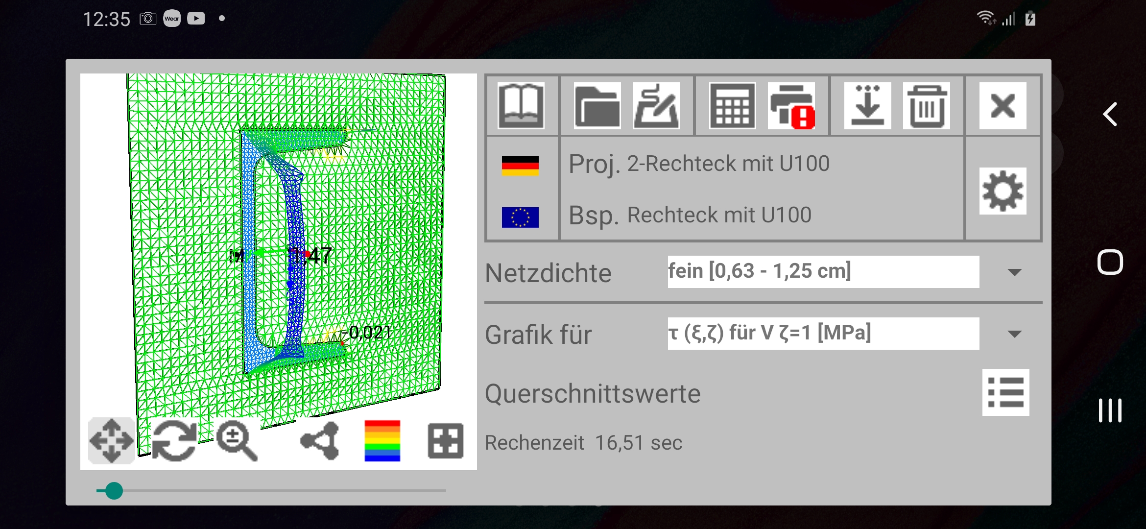 Fazit: Es zeigt sich, dass sehr anspruchsvolle Rechenprogramme aus dem Bereich des Ingenieurwesens auf mobilen Endgeräten wie Smartphone oder Tablet effizient eingesetzt werden können.